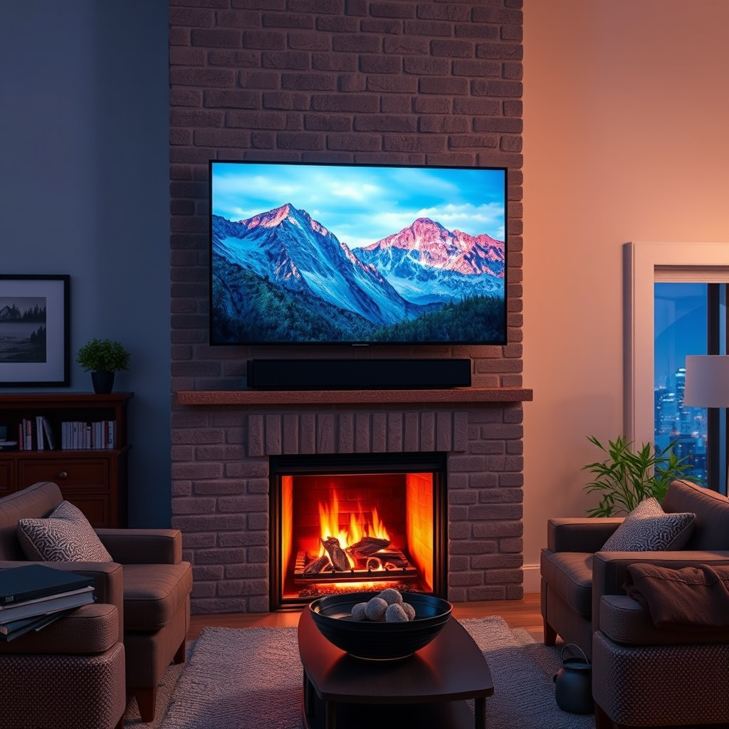 – Decor Integration: Use furniture, color schemes, and decor elements to create a cohesive look. For instance, matching the TV frame with the fireplace mantle or using similar colors can help unify the space.